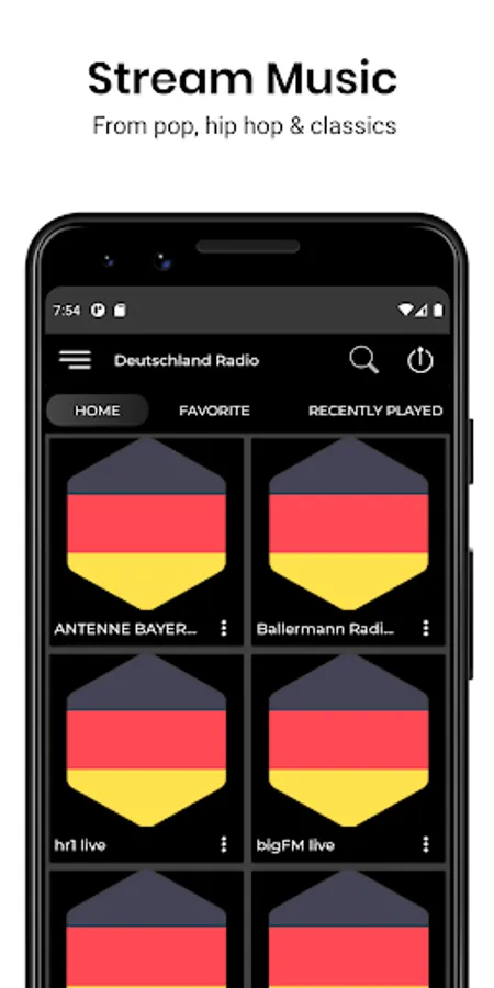 ■ save your favorite radios and easily retrieve them.