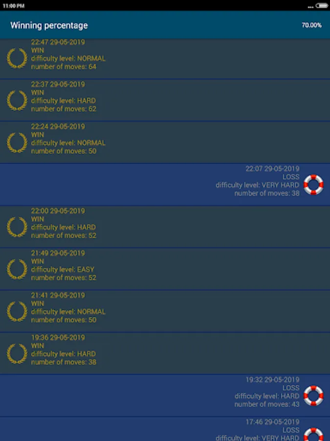 When the game interrupted or you exit it, the game is automatically saved. You can always return to the game and continue it. The game is saved until it ends.