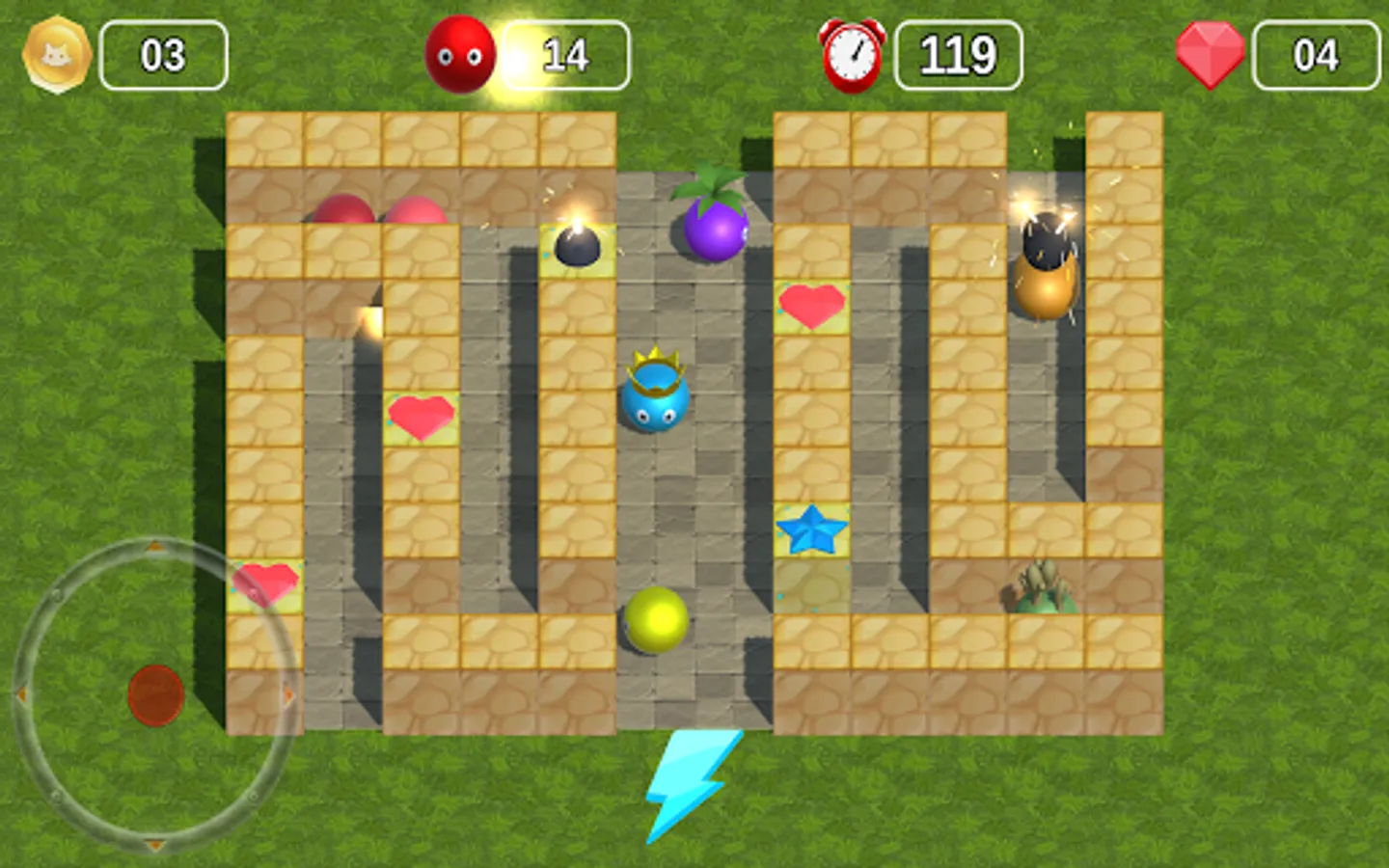 Some special bricks in the Labyrinth will have special effects when pushed, which can quickly hit the enemy and save time.