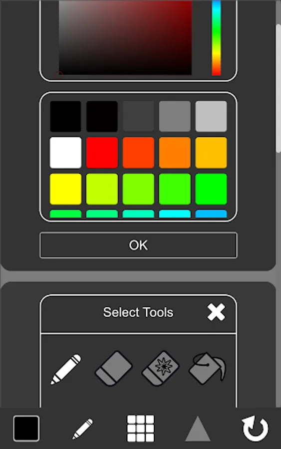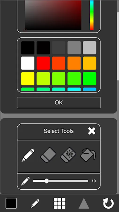 The color and shape of the brush can be adjusted. The save function allows your work to be saved as a picture in your phone's photo album.