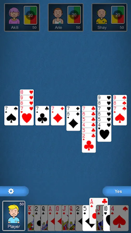 The main way to play is to complete the Solitaire game with multiple computer players, and play a card in each round. If there is no card available, you will receive the card given to you by the opponent.