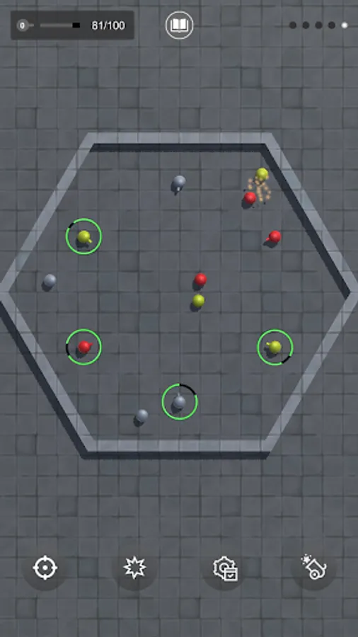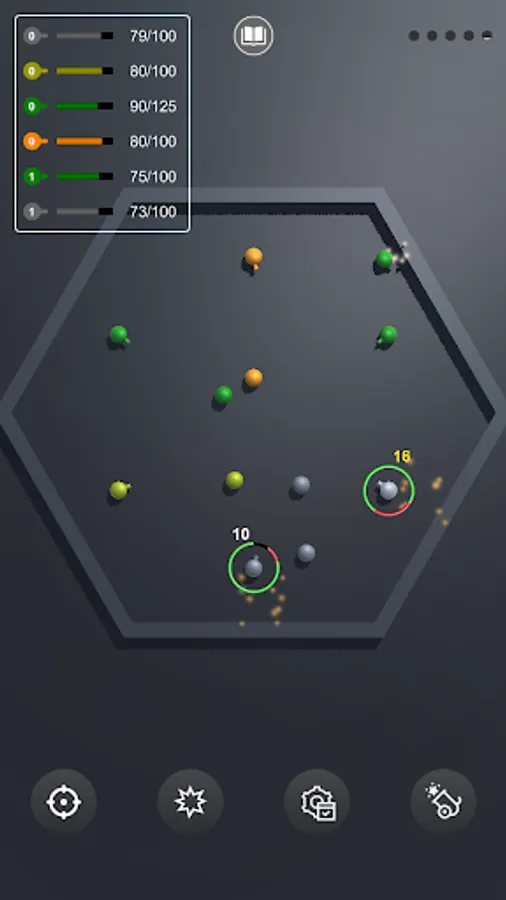 The main gameplay is to use the aiming of the turret to launch artillery shells, use the shell explosion to hit the small ball, and let the small ball hit the turret to cause damage.