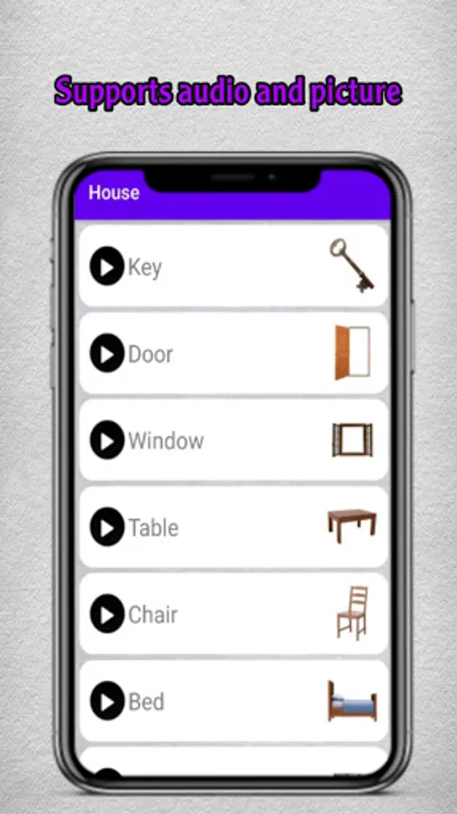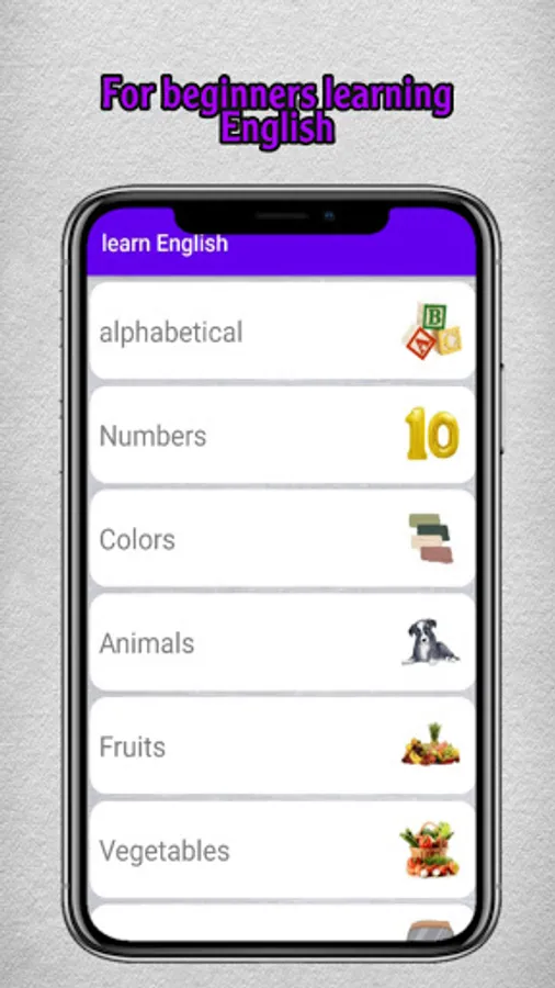 The application contains vocabulary of the English language with pictures and sound. An easy and simple to use application that is not complicated