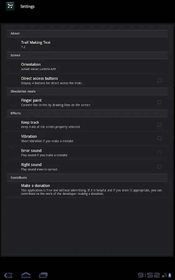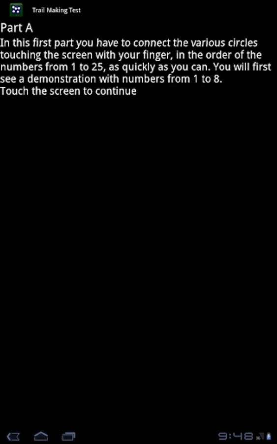 This application reproduces on touchscreen devices the neuropsychological test called "Trail Making Test", introducing new experimental features.
