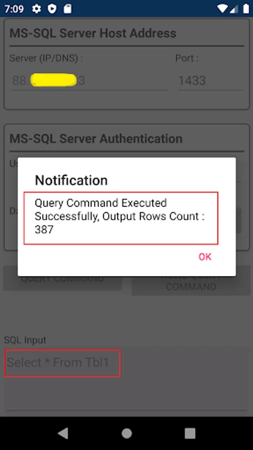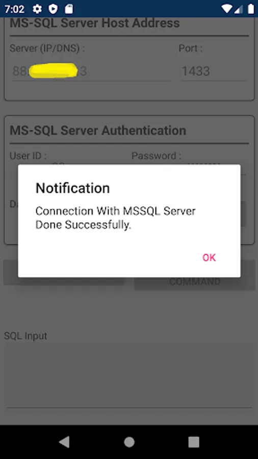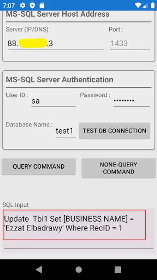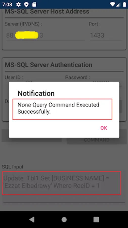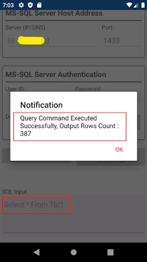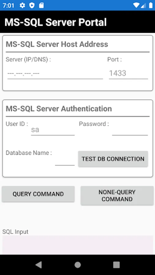 This app is used to connect to any remote MS SQL Server and execute queries (Select statements) and display data result.