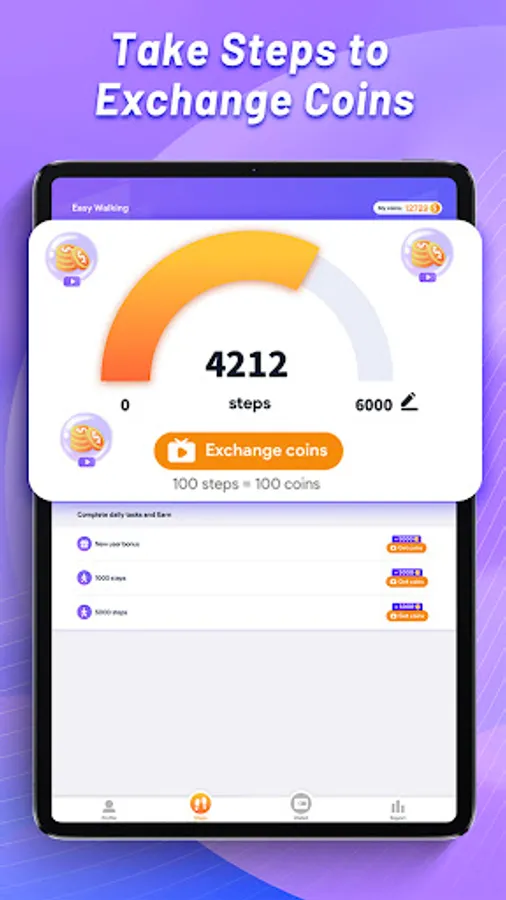 Easy Walking will reward your steps by "hard-walking". You can also get more reward by completing daily tasks, like sign in every day, or try your luck for awesome rewards playing legit instant games for free.