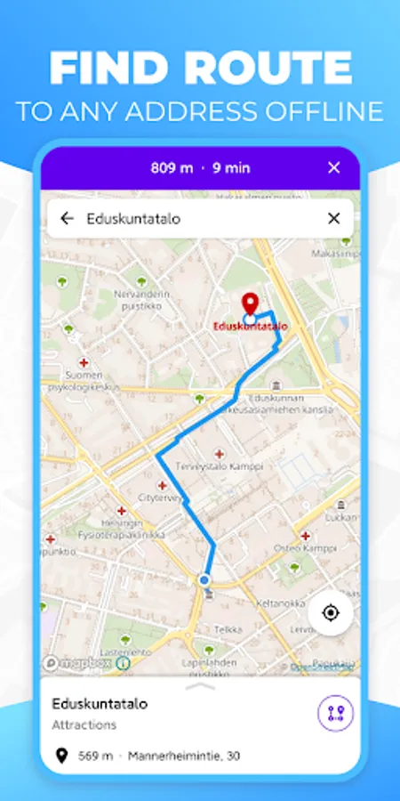 With zMap free offline map and navigator for Helsinki it's super easy to find any destination and route in Helsinki. It's very fast, simple and does not require Internet connection!