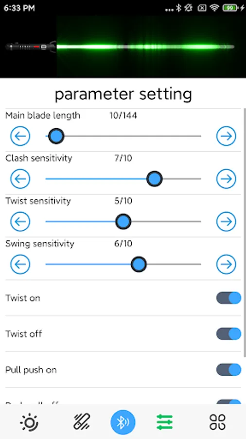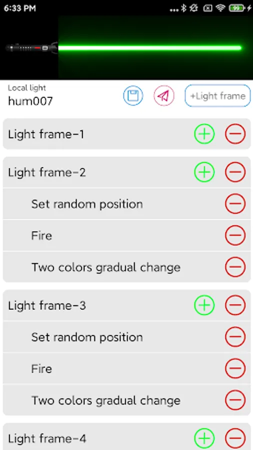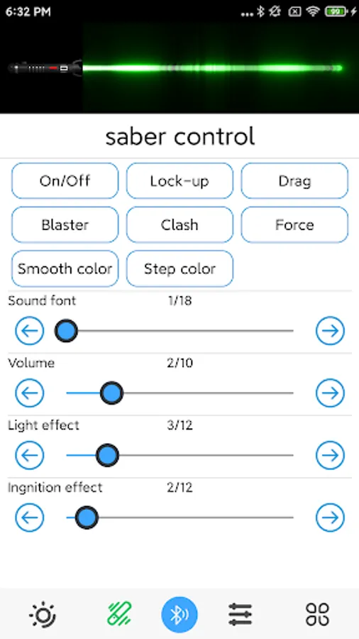 The app is mainly used with our lightsaber device, and is bound to the device through Bluetooth. After binding, you can control various operations of the device through the app and obtain the status of the device. Lighting effects can also be edited and previewed in the app simulator, which can then be pushed to devices for use via Bluetooth. You can also get the latest version of the device and push the upgrade package to upgrade the device through Bluetooth.