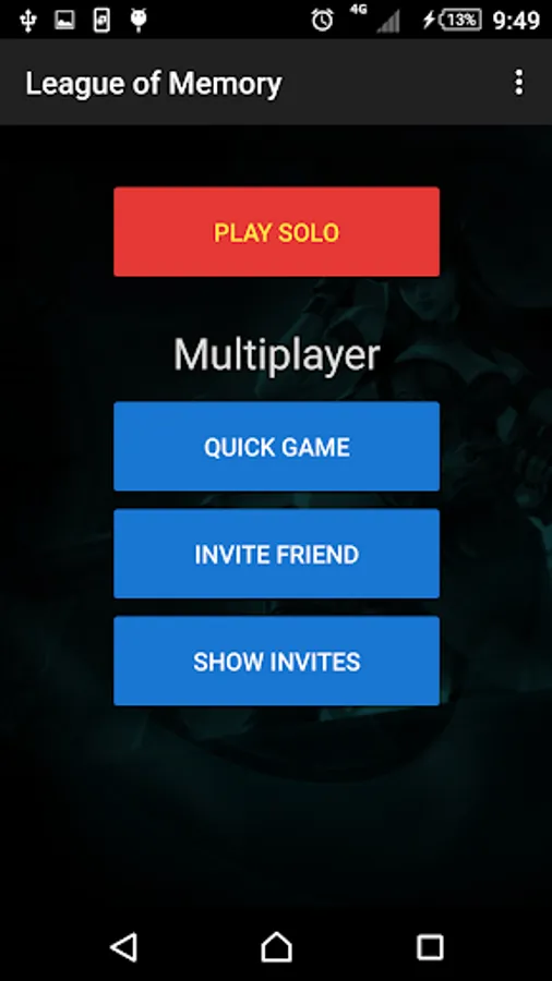 A game made by fan for fans of League of Legends. Just for those moments when you can't enjoy your favorite game. Exercise your mind playing Memory with LoL images.