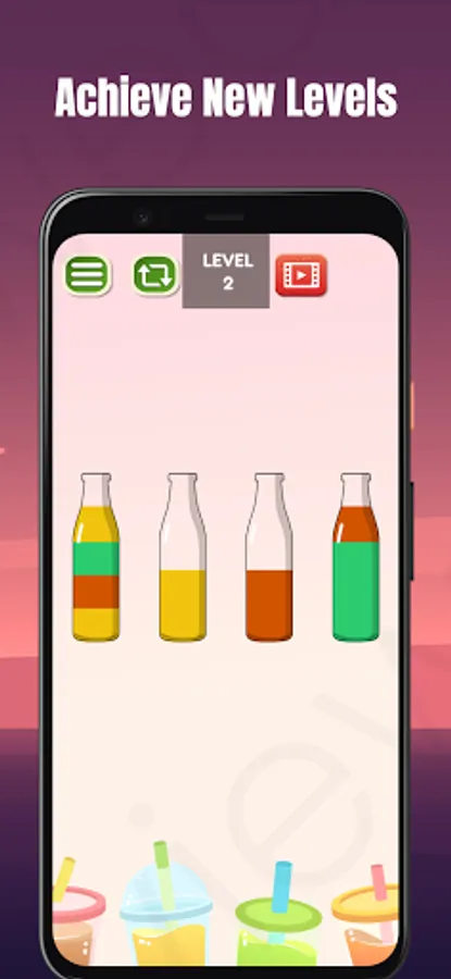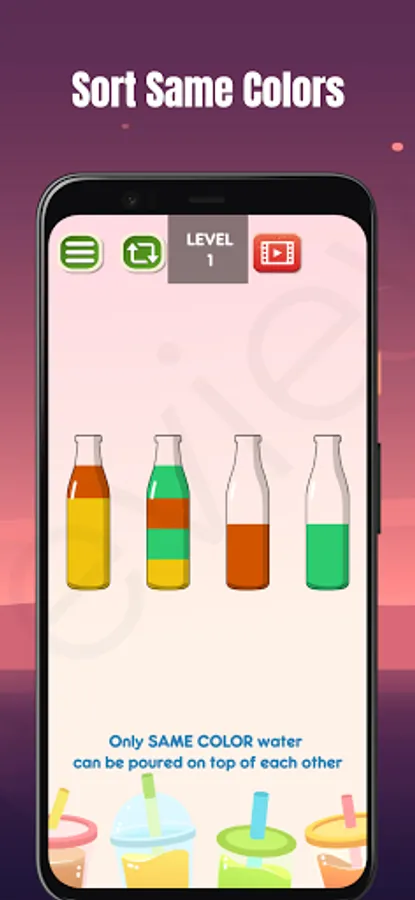 This water's sort puzzle game starts with very simple wonter puzzles and gets really, really hard as you progress. Once you start leveling up, you will be challenged by more tubes and more colors, meaning you will have to think twice, thrice to correctly sort water.