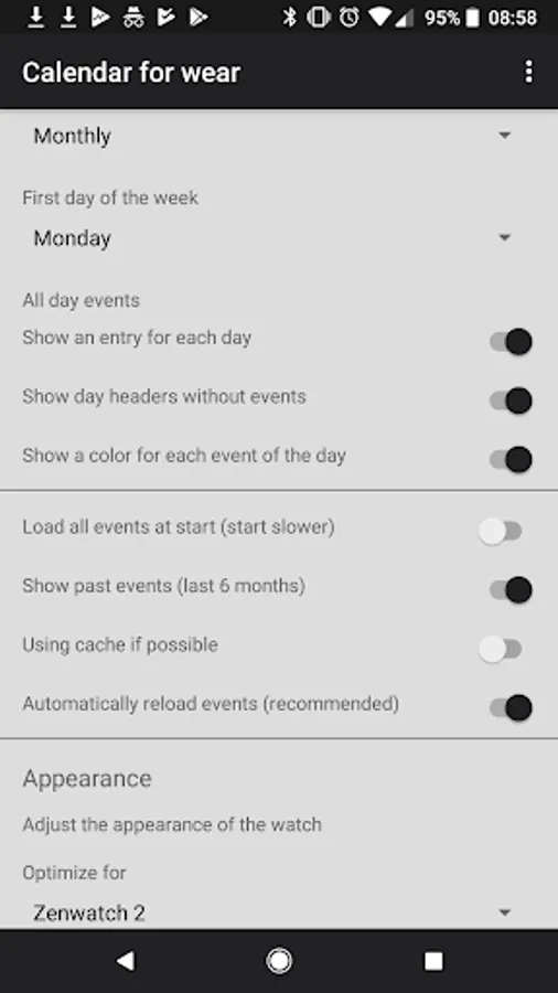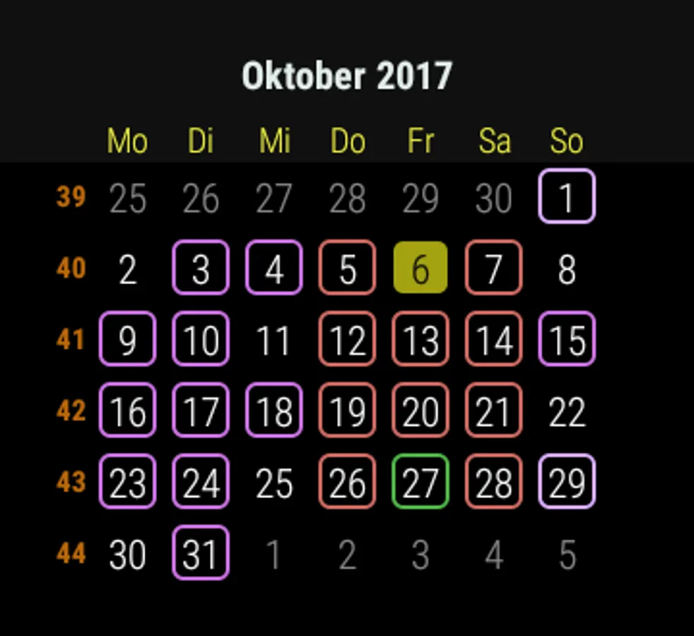Monthly view, daily view, detail view (with navigation), create and delete event