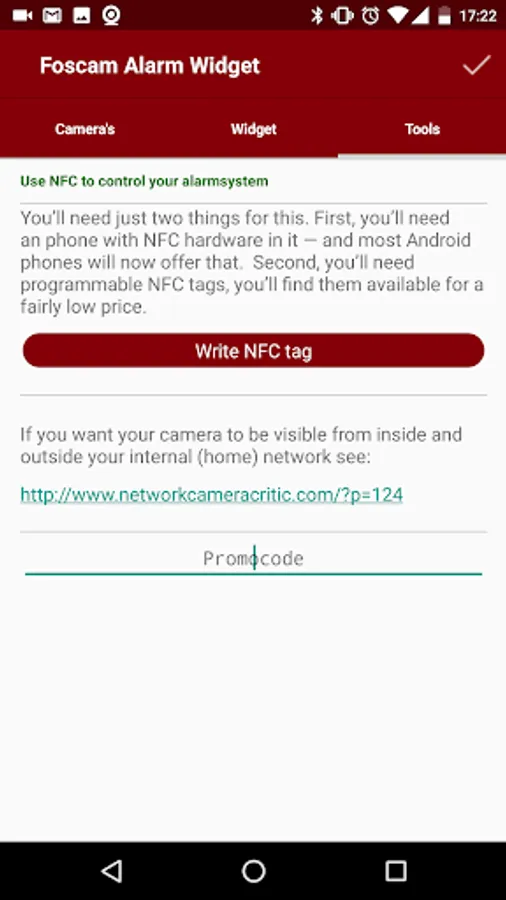 Foscam Alarm Widget is a simple widget to check, arm and disarm your camera's. With the widget you can switch to another camera with just one click. Another great feature is the overview of all camera’s, in this overview it is possible to arm or disarm all camera’s at the same time.