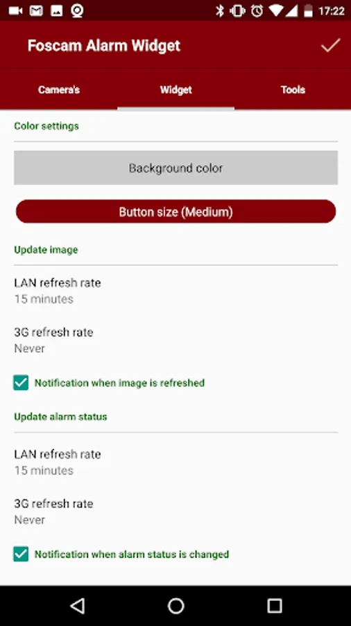 Foscam Alarm Widget is a simple widget to check, arm and disarm your camera's. With the widget you can switch to another camera with just one click. Another great feature is the overview of all camera’s, in this overview it is possible to arm or disarm all camera’s at the same time.