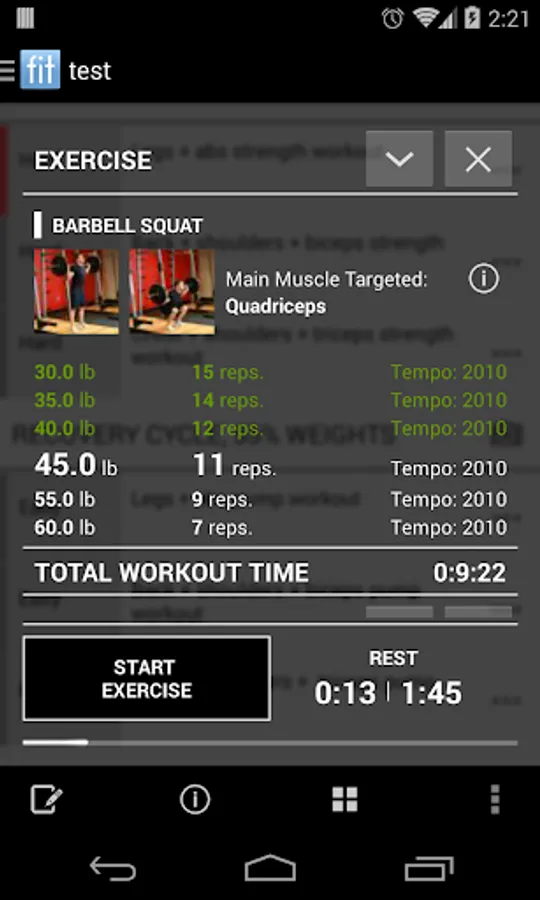 It allows you to plan a workout of any difficulty. The workouts are united into programs, thus you can plan your progress to become stronger, burn excess fat or acquire the muscle mass you need.