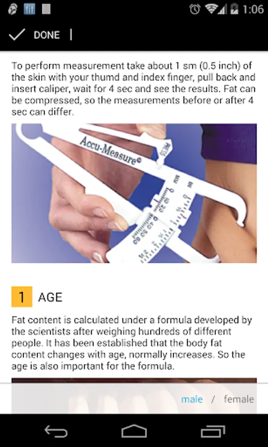 2. Body fat percentage calculator. The calculator makes it possible to calculate your body fat percentage without any complicated devices, just measuring fat layer thickness in several places.
