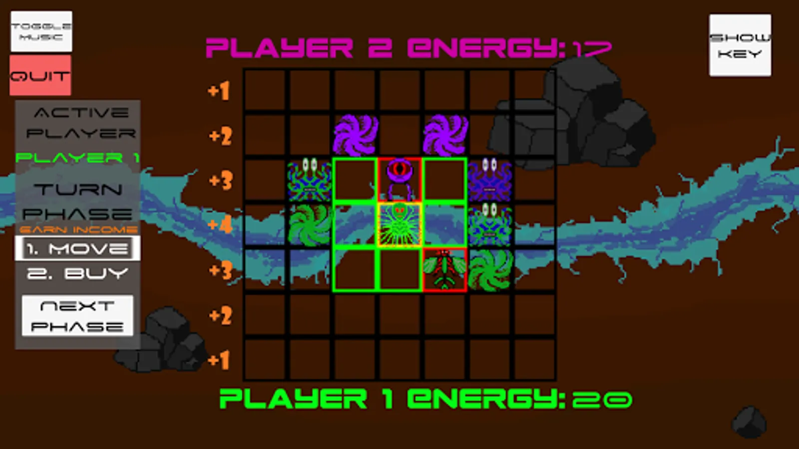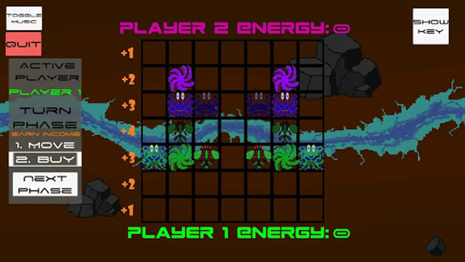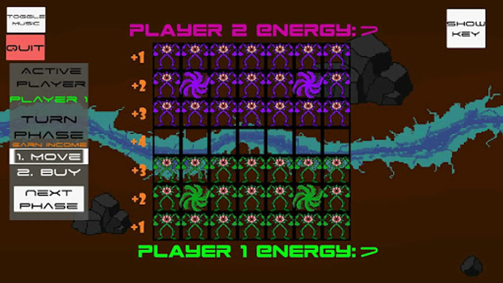 Galaxy Strike is a 2-player turn based strategy game where players must balance out the risk of moving their portals closer to the enemy, with the reward of sapping power from the leyline.
