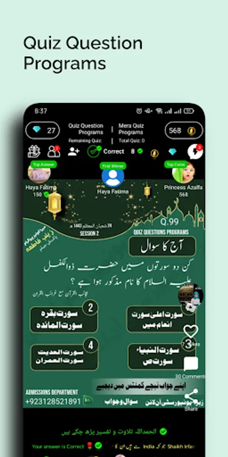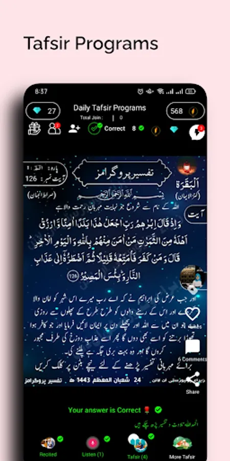 We are updating new more in our app Quiz question programs and Daily Tafsir program in this you can learn more Quran tafsir with Audio and translation and also improve the Registration form for join online courses and programs.