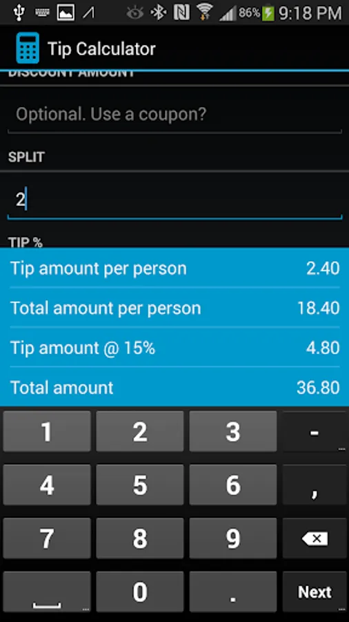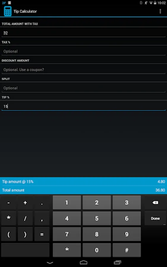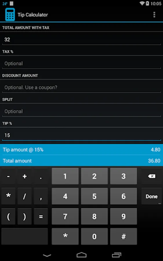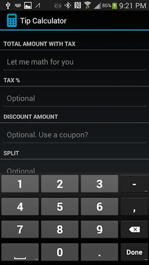 Did you know you should tip on discounts? Did you also know that you shouldn't tip on sales tax? Split your bill? This simple app will do all that! Down with math! Send me feedback!