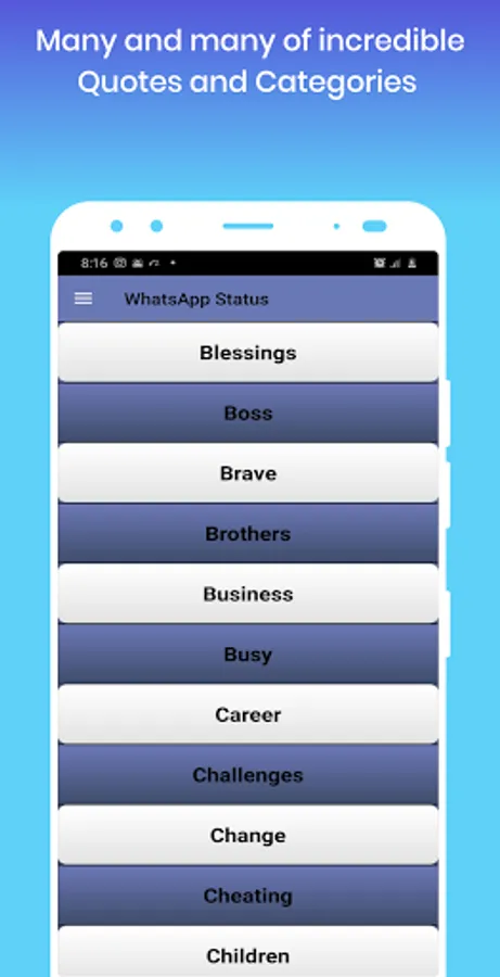 Best Quotes and Status is an app that provides a large collection of quotes and statuses of different categories. There are more than 85,000 quotes and more than 110 categories.
