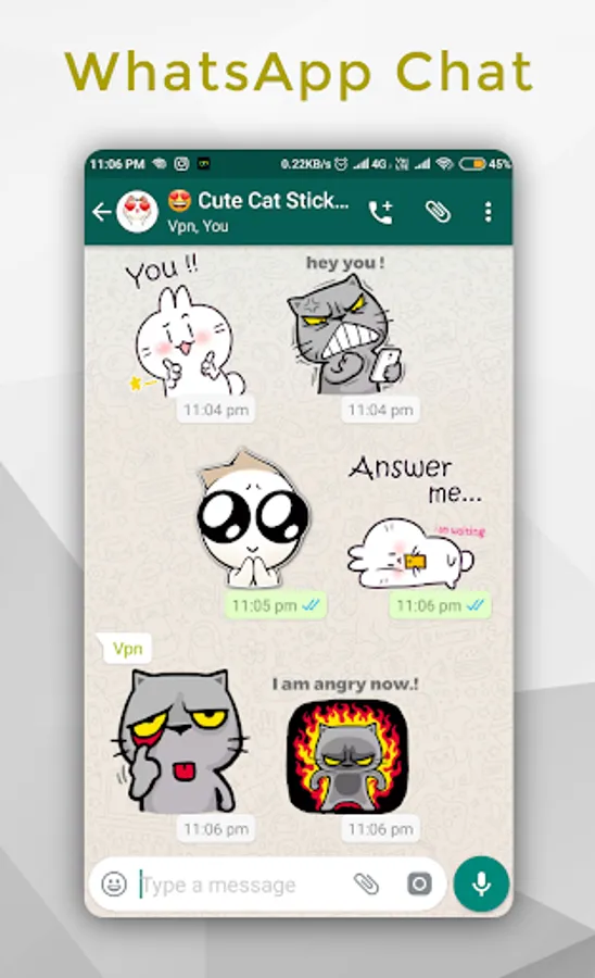 Share this amazing sticker app with your lovely cat and Enjoy Whats-App Chat.