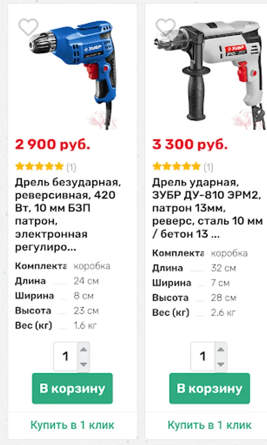 One of the most popular Zubr products is the electric drill. These tools have high rotation speeds, a powerful motor and good controllability, making them ideal for a variety of tasks, from drilling holes to driving screws. In addition, many models of Zubr electric drills have a built-in variable speed capability, which allows the user to select the most appropriate speed for a particular task.