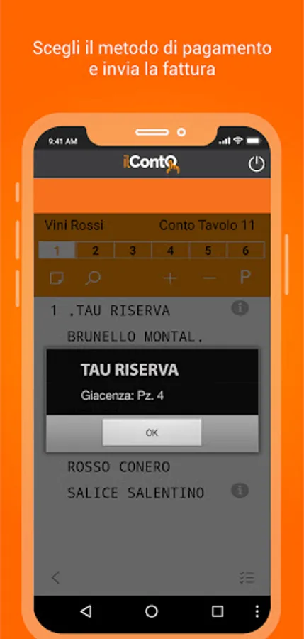 ilConto allows the identification of tables and their status, to receive and send orders to the various departments, insert free notes in them, correct or cancel an order until the account is processed in the form of an invoice, receipt or receipt.