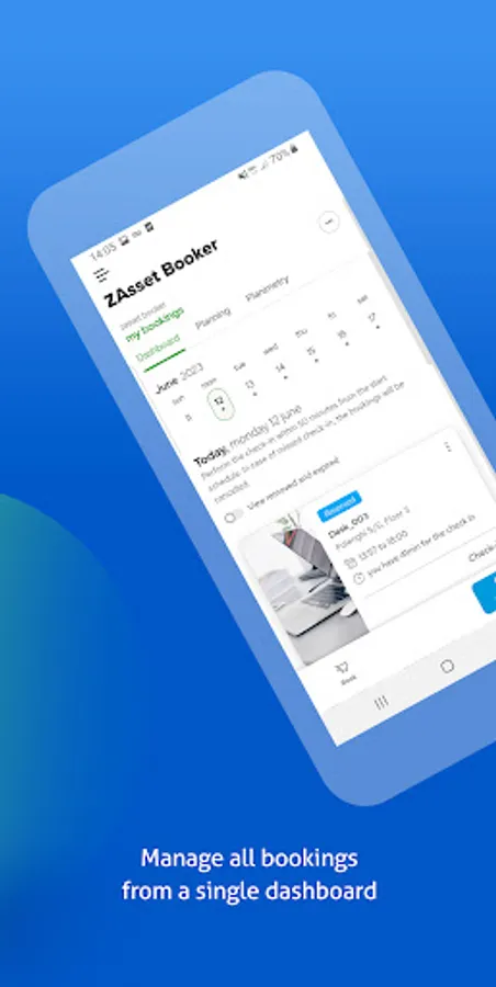 The ZAsset Booker app, a mobile extension of ZAsset Booker, is the Zucchetti solution that allows the booking and check-in/out of spaces, assets and services related to the working User Journey: