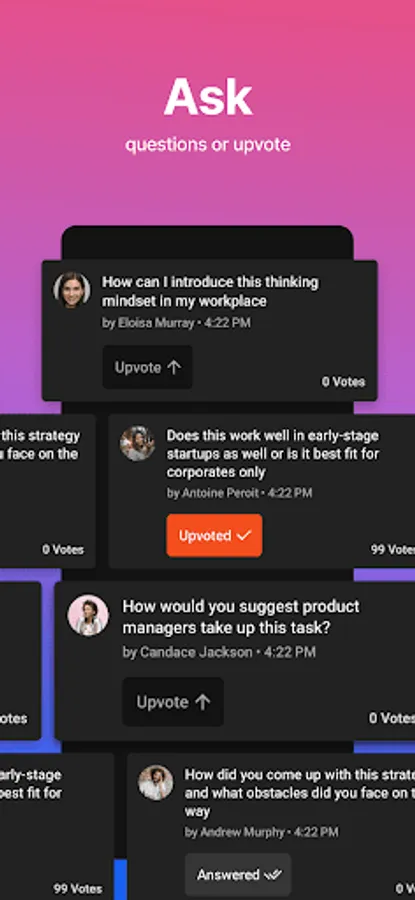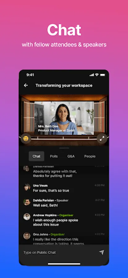 Post questions to the speaker/organisers on the stage & upvote questions posted by other attendees.