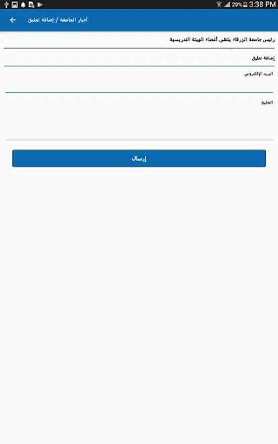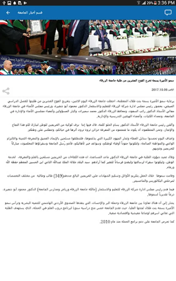 Fa student can watch the university news and advertisements, as the application allows the student participation news or advertising through social networking applications available on the phone, and the application allows students to add a comment on the news or advertising.