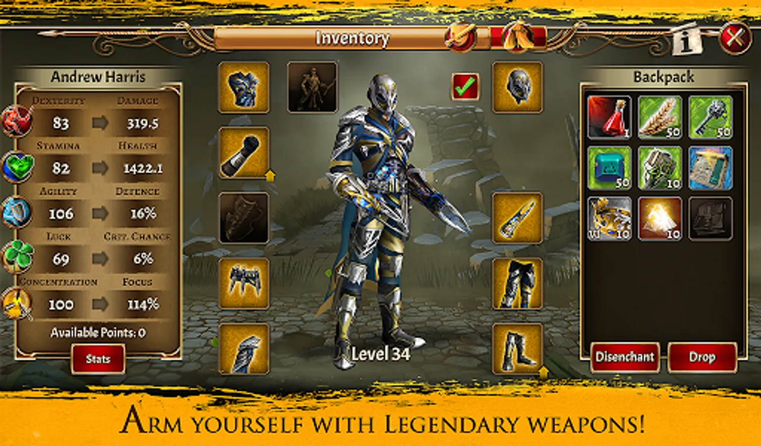 - 100+ monsters to slay, with dozens of legendary boss encounters! Combat undead hordes of evil, ancient dragons, shockingly original monsters and classic fantasy creatures resembling goblins, orks, ogres, elfs.