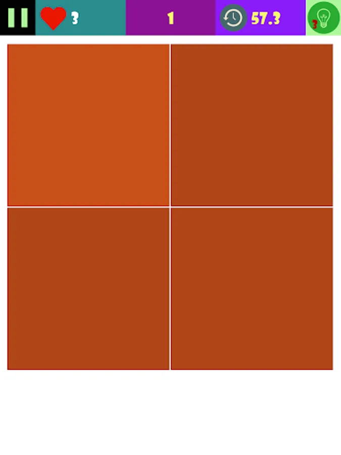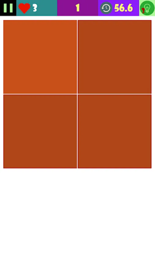Color Mania Game is a very easy to play addictive puzzle from zuhapps. The challenge is finding a different colored block from the matching colors in 60 seconds. You will get 1 point by solving one match puzzle. Note, you will lose 1 point if you failed three times to solve the color puzzle. You can use up to 3 hints, but will lose 5 points if you try a hint within 60 seconds of the Color Game.