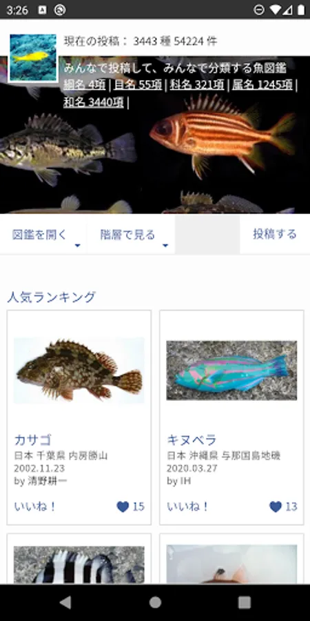 The WEB fish encyclopedia, which contains 58,000 data of 3700 species, is a post-type fish encyclopedia that gathers fish lovers from all over Japan, such as anglers, divers, and aquarists. Along with many photos, we introduce the characteristics and distribution of each fish, as well as taste reviews.