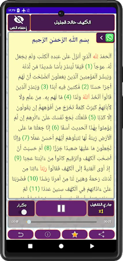 Surat Al-Kahf is written and audible with the voice of Sheikh Khaled Al-Jalil