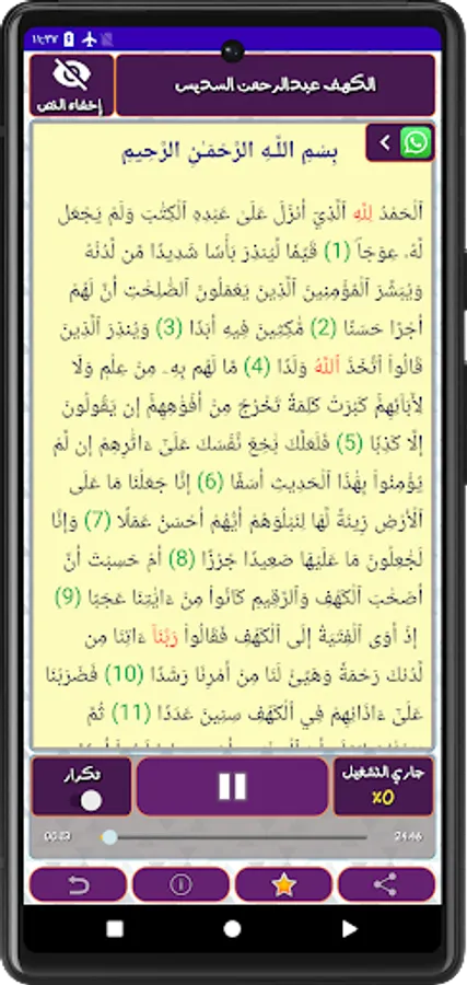 Surat Al-Kahf written and audible with the voice of Sheikh Abdul Rahman Al-Sudais