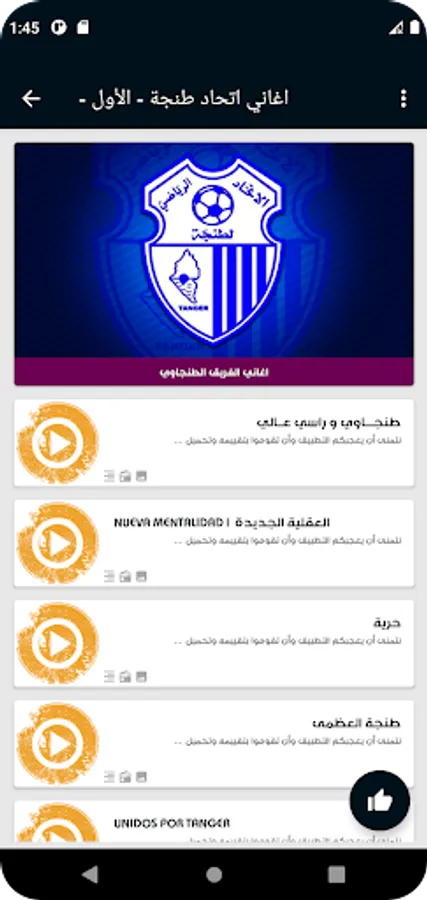 This application contains the songs of Ittihad Tanger 2023 without the net.