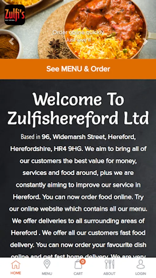 We're also available for ordering on https://zulfismadkitchen.com/storemenu and also on https://kuick.com/order/zulfishereford