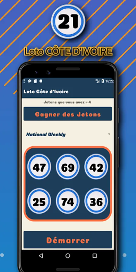* This app makes playing random lotto numbers and lottery predictions easy , fun and rewarding for lotto games in CÔTE D'IVOIRE