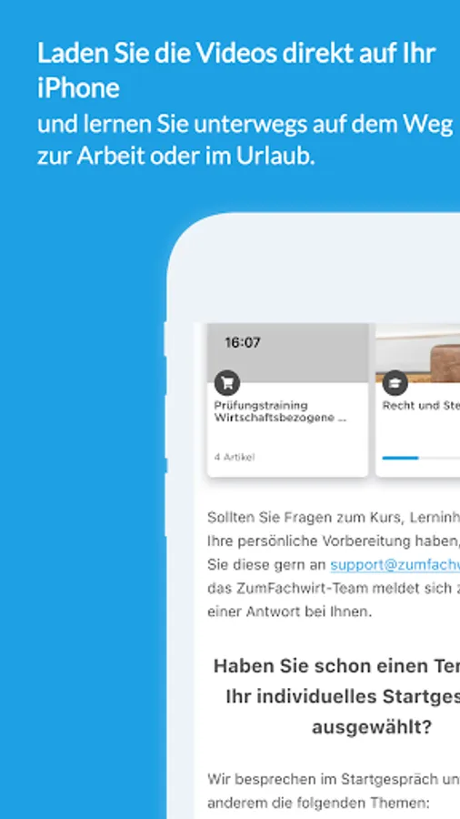 This is the app for all ZumFachwirt customers. Here the videos, scripts and mind maps can be viewed and downloaded.