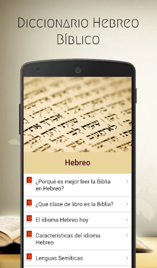 Diccionario hebreo bíblico es una herramienta para aprender de una manera fácil y sencilla el significado de las palabras bíblicas en hebreo. Con una menú de fácil acceso accederás a todas las fichas con las definiciones de las palabras ordenadas alfabéticamente.