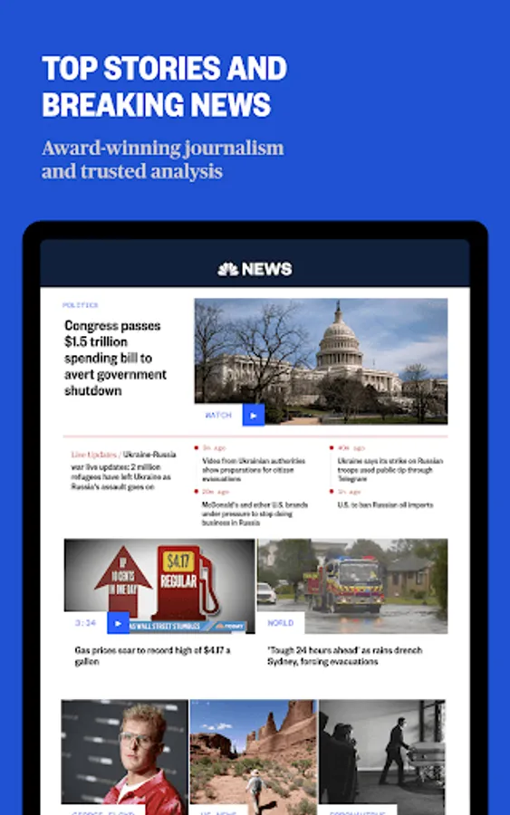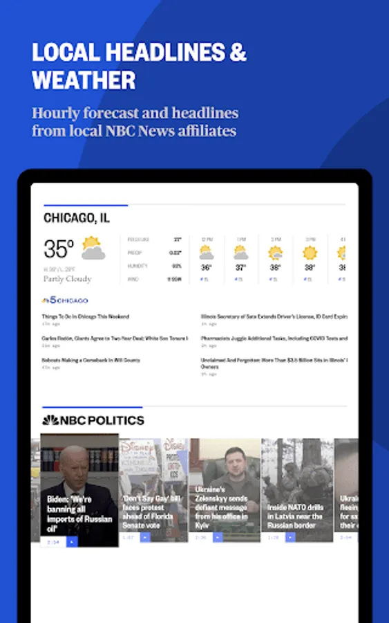 NBC News brings you the breaking news, top stories and live news you need to know. Our free news app features real-time news alerts, in-depth stories, exclusive reporting and articles from award-winning journalists covering relevant US news and international news. Get your daily news fix with topics spanning politics, opinion, health news, tech and science news, business, sports, celebrities and entertainment. Get alerted about local news, weather and local headlines from your area. Watch NBC News NOW in the app for 24-hour news coverage, special reports and live streams of current events, and stay up-to-date when news breaks with our live blogs. Watch your favorite primetime and daytime NBC News and MSNBC shows, and listen to a live audio feed of MSNBC with no login required.
