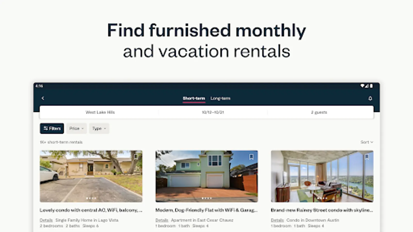 Enjoy a seamless renting experience from start to finish with Zumper, the largest rental marketplace. Discover apartments, houses, or rooms for rent that match your preferences, request virtual or in-person tours, submit applications, and pay rent. All in one app.