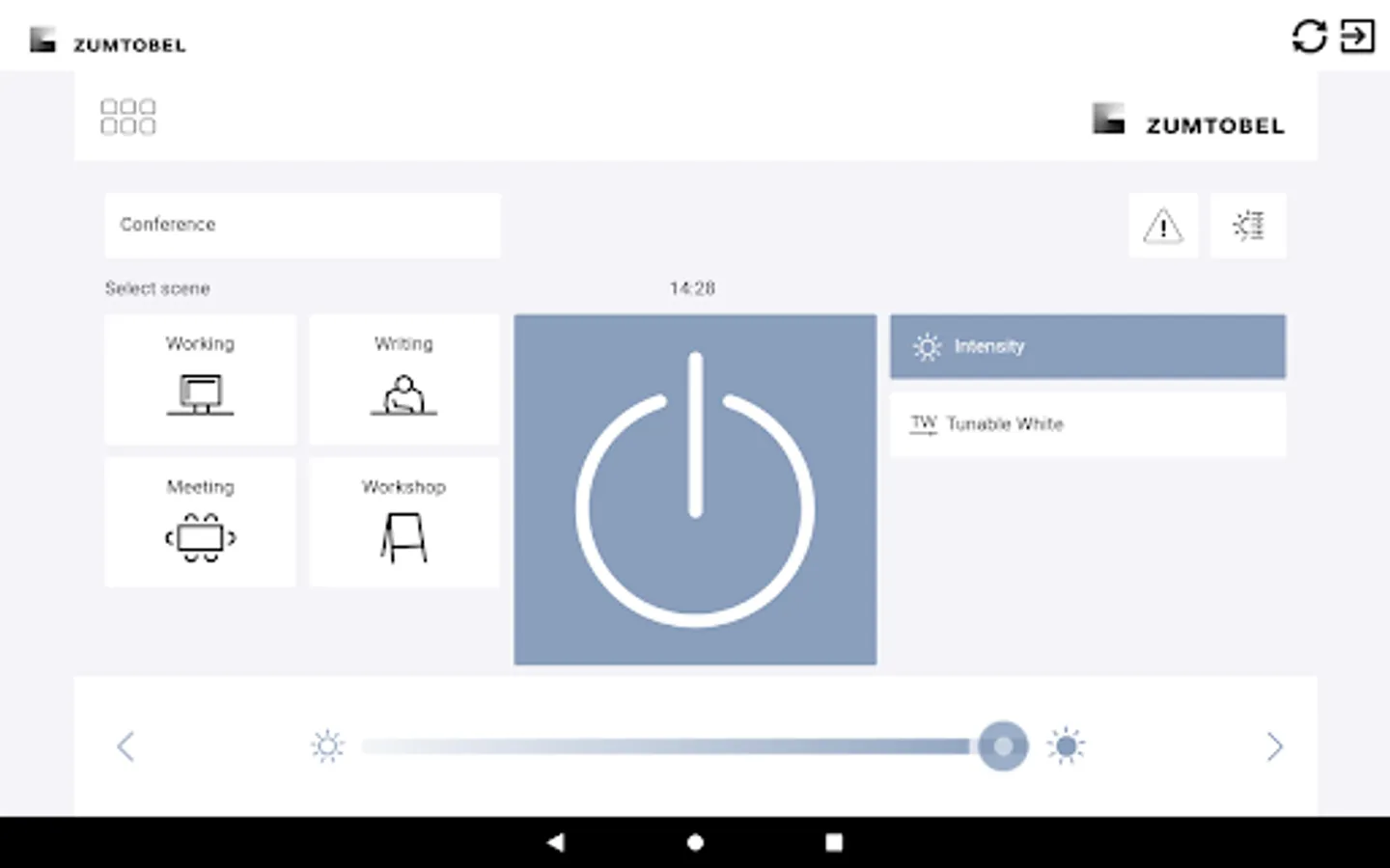 This app links mobile devices to a LITECOM lighting management system. Thus, you can conveniently control a lighting system controlled by LITECOM via your smartphone or tablet PC. The graphic user interface will automatically adjust to the size of the display.
