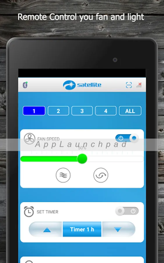 Remote control your compatible devices by using your phone or tablet. The app when paired with our smart controller can operate your fan by turn on/off, change speeds and control your light kit including dimming feature.