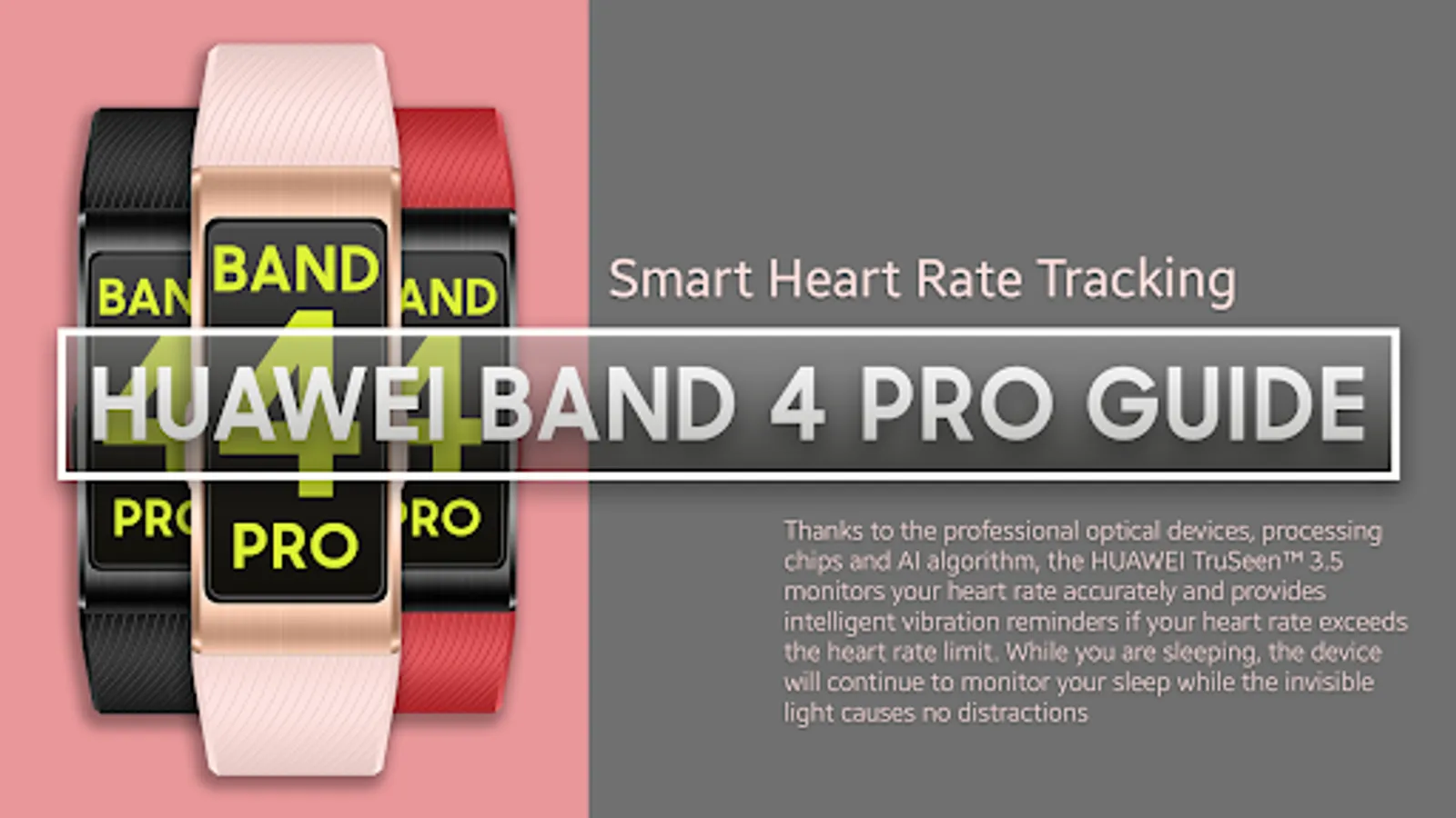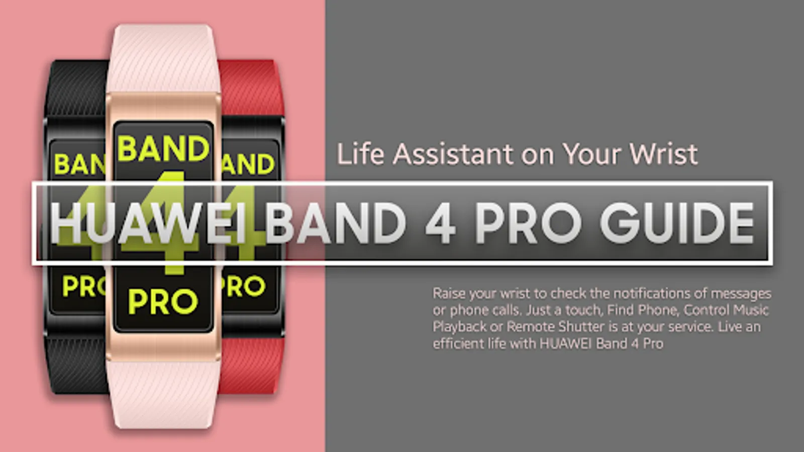 With the Huawei Band 4 Pro Watch guide and review app more information on how to use the smart watch, download the Huawei Band 4 Pro guide app Our mobile app tells you what you want to know about Huawei Band 4 Pro Smartband.