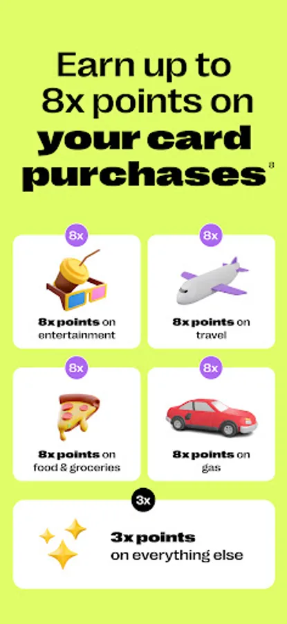 • 8x points on restaurants, food delivery services, travel, entertainment & rideshare