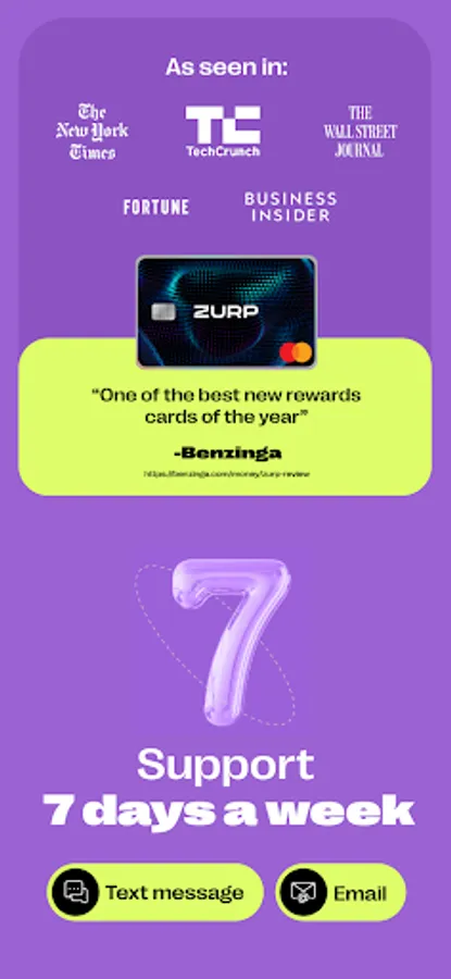 Zurp is a banking app that helps you earn rewards from your everyday purchases and beyond. From paying rent to grabbing your morning coffee, every card purchase gets you points that you can use towards concerts, VIP events, Amazon, Starbucks & more!⁸