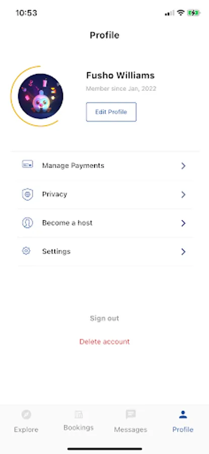 • Contact your host, view check-in times, and write reviews