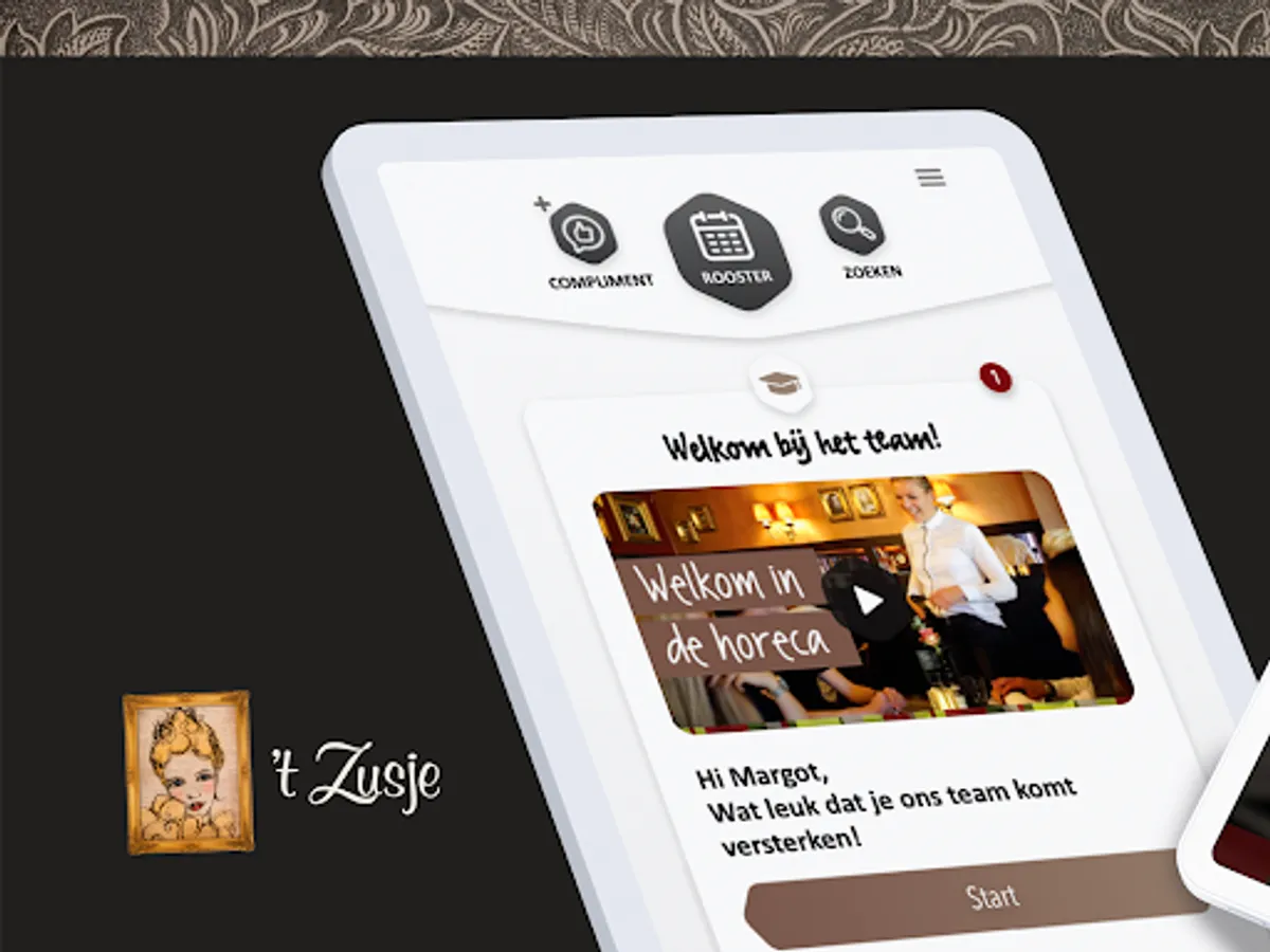 't Zusje en ik is our own Zusje employee app. The place where you can go for everything you want to know (and learn) about 't Zusje. This way you are always and everywhere up-to-date about the latest news and you can learn all the ins and outs about 't Zusje and the catering industry in general via the Zusje Academy. But in the Zusje employee app you can also easily check your schedule, arrange that well-deserved day off and, not unimportantly, find your pay slips! In short, no more paperwork, emails or all kinds of other communication.