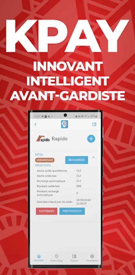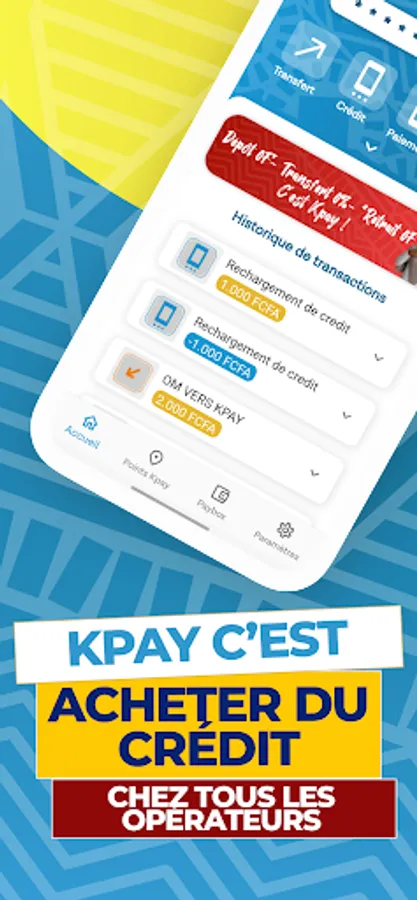 • Reloading of Kpay accounts from other Kalpés,