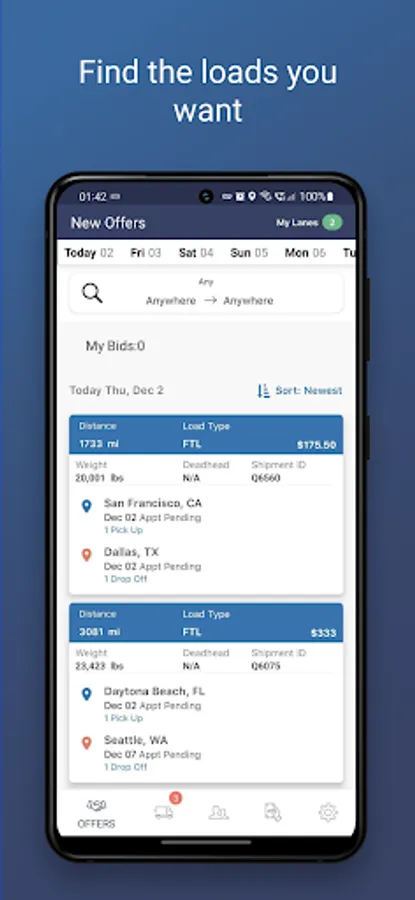 Transport SaaS allows fleet managers, owner operators and drivers to connect directly with shippers to find loads for delivery. The Transport SaaS app handles all aspects of the delivery process so te driver can focus on safely and efficiently delivering their freight without worrying about check calls, billing and pricing.